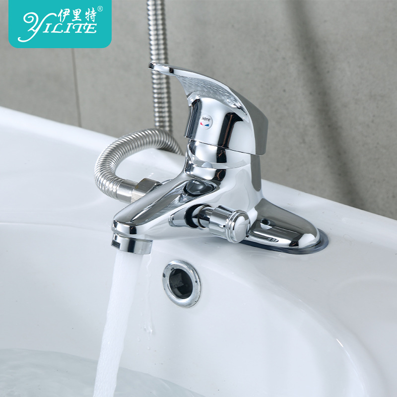 Keran wastafel tembaga dua kegunaan, keran mandi tarik tiga sambungan, keran wastafel tembaga tujuan ganda