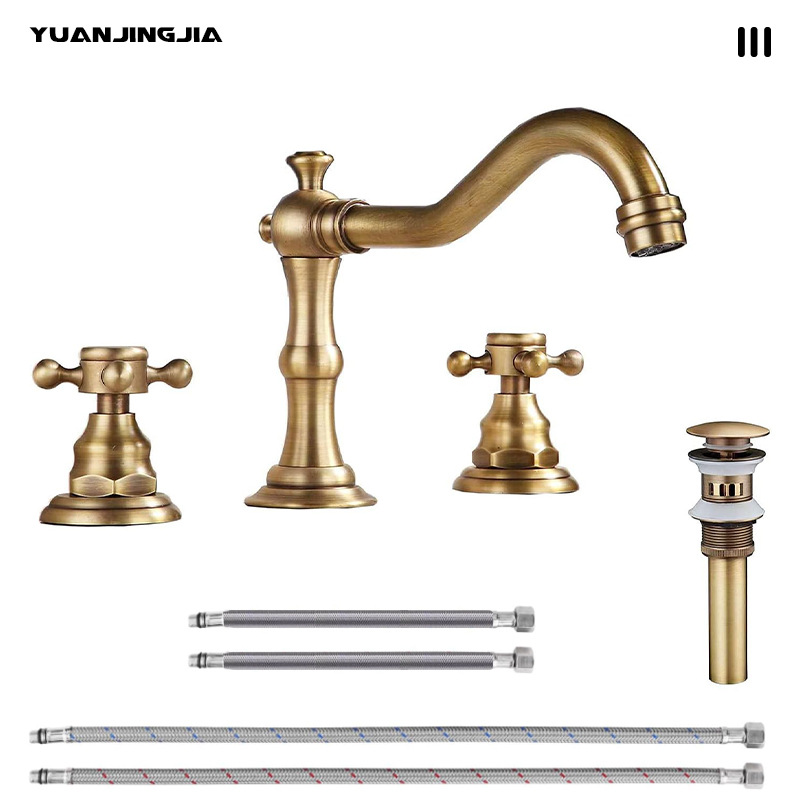 Keran kamar mandi gaya Eropa, keran air terjun, keran tembaga panas dan dingin, bak cuci meja, keran retro, keran berputar