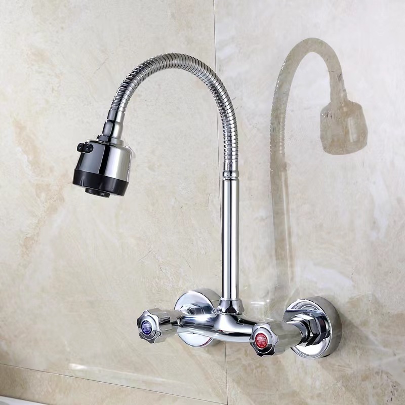 Keran wastafel dapur panas dan dingin, keran dapur, wastafel panas dan dingin, keran rumah tangga dapat diputar