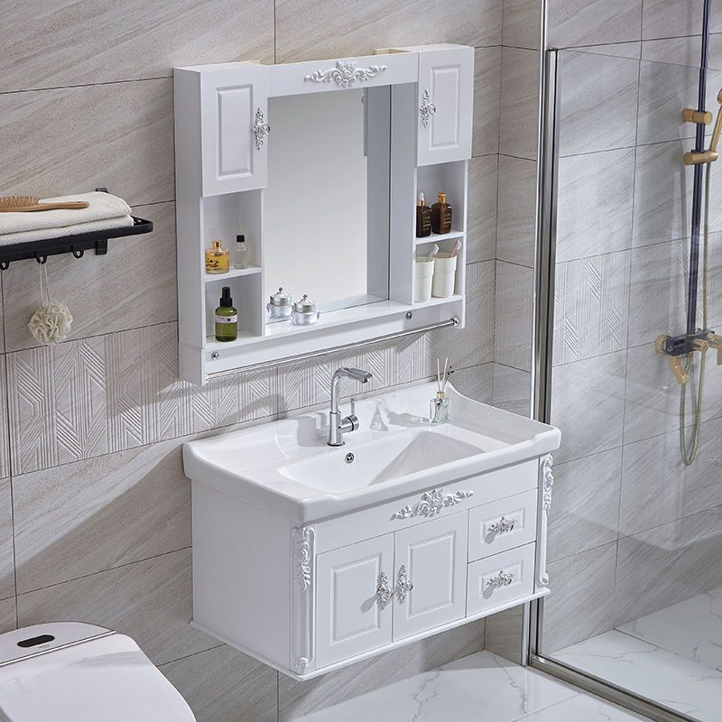 Lemari Kamar Mandi Aluminium Ruang Sederhana Gaya Krim Lemari Kamar Mandi Satu Tubuh Keramik Baskom Kamar Mandi Meja Cuci Cermin Pintar