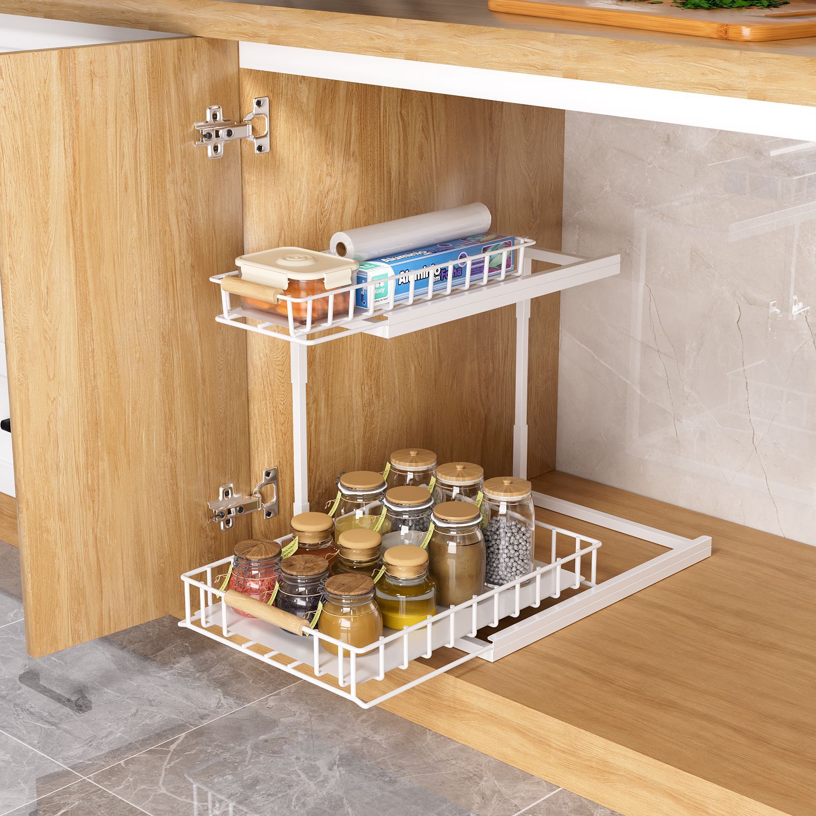 Rak Penyimpanan Botol Bumbu Tipe Tarik Lapisan Ganda Dapur Lintas Batas