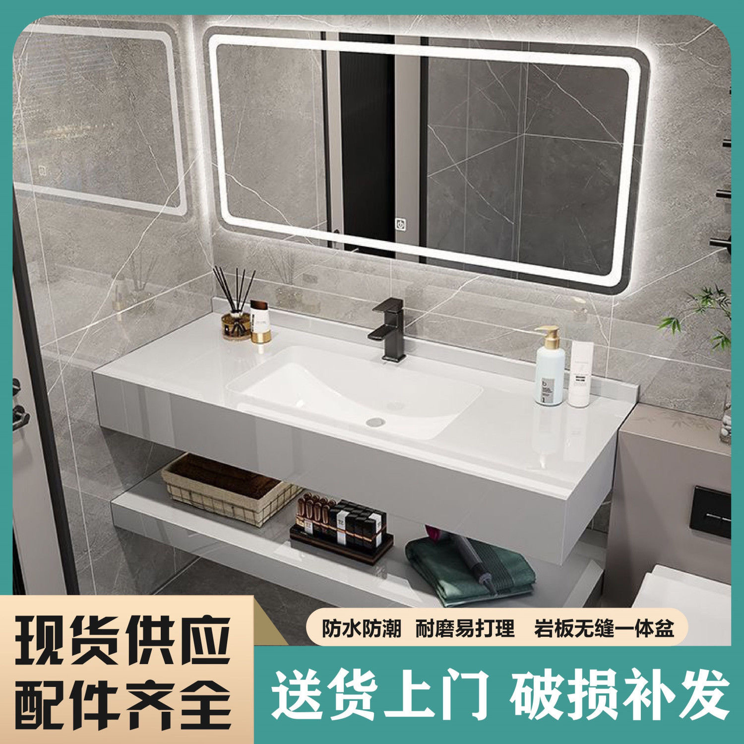 Kxh2025 Kabinet Kamar Mandi Model Baru Papan Batu Keramik Multifungsi Kombinasi Kabinet Wastafel Kamar Mandi Mewah Ringan