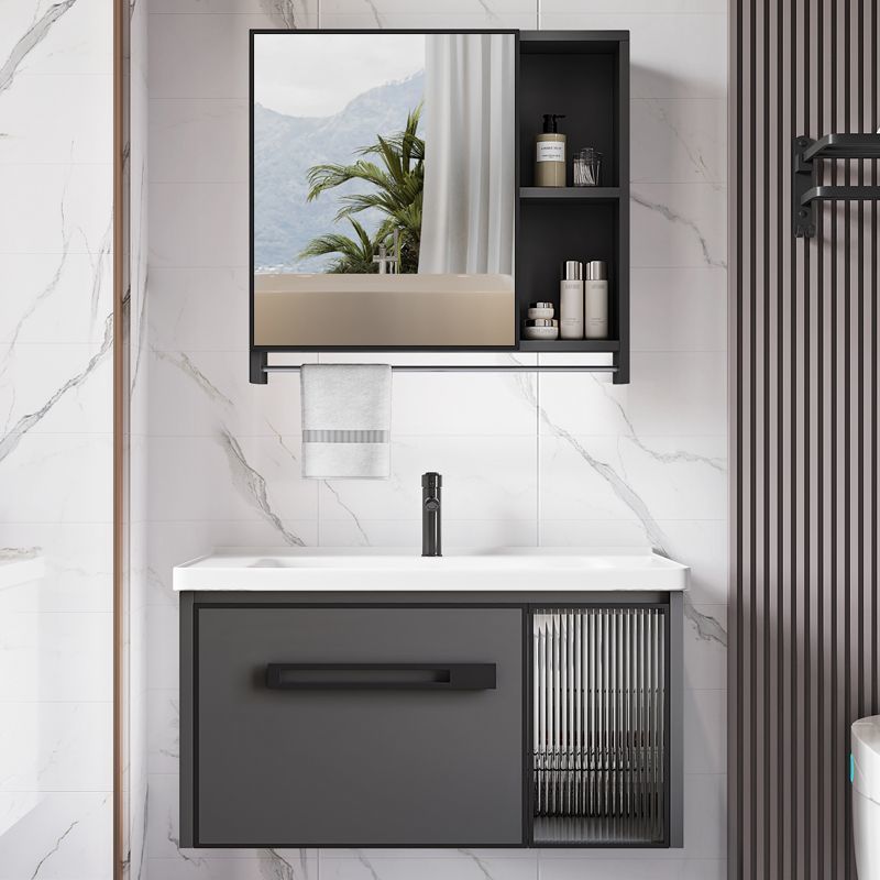 Baskom Cuci Wajah Model Gantung Dinding Meja Cuci Kamar Mandi Sederhana Papan Batu Kombinasi Lemari Kamar Mandi Aluminium Luar Angkasa Model Baru