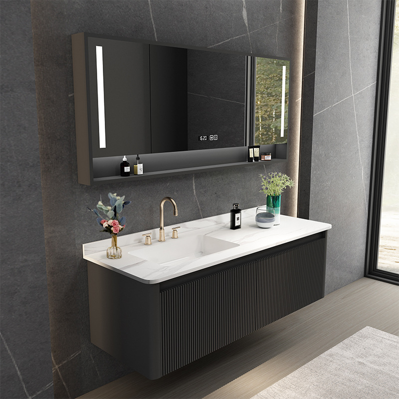 Sensor kulit batu qimene baskom terintegrasi kayu padat kabinet kamar mandi kombinasi cermin pintar lampu induksi kabinet utama emas Parkson kamar mandi H002