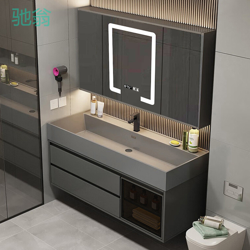 Kabinet kamar mandi sederhana modern kombinasi kamar mandi terintegrasi keramik baskom meja cuci bak cuci kabinet cermin pintar