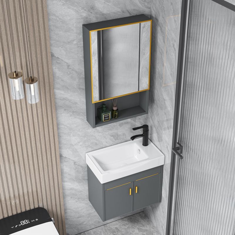 Kabinet kamar mandi ruang abu-abu, bak cuci kamar mandi aluminium terintegrasi baskom keramik tanpa kelim piring batu