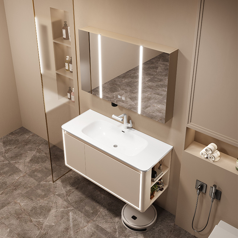 Lemari Kamar Mandi Aluminium Luar Ruangan Lemari Cermin Cerdas Baskom Cuci Wajah Ekstra Tebal Meja Cuci Dinding Kombinasi Baskom Cuci Keramik Kamar Mandi
