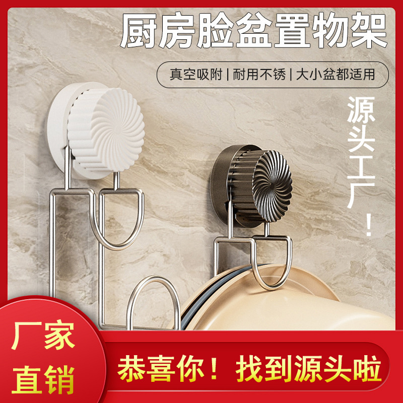 轻奢吸盘脸盆架挂钩浴室盆子收纳架置物架厕所免打孔家用挂盆神器