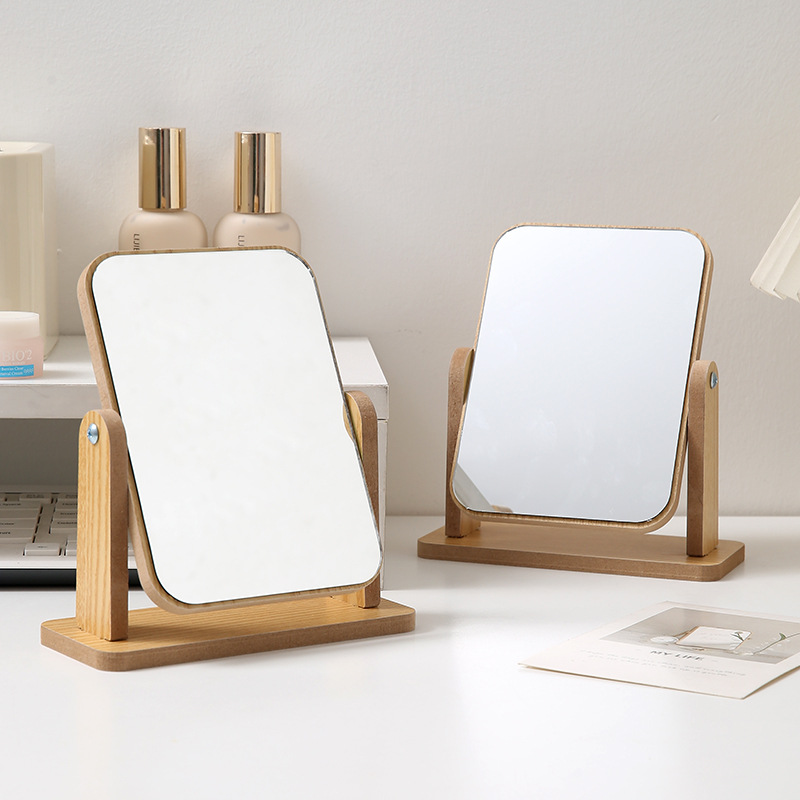 Cermin rias meja kayu untuk wanita, kaca meja asrama wanita portabel besar, cermin rias lipat HD untuk siswa