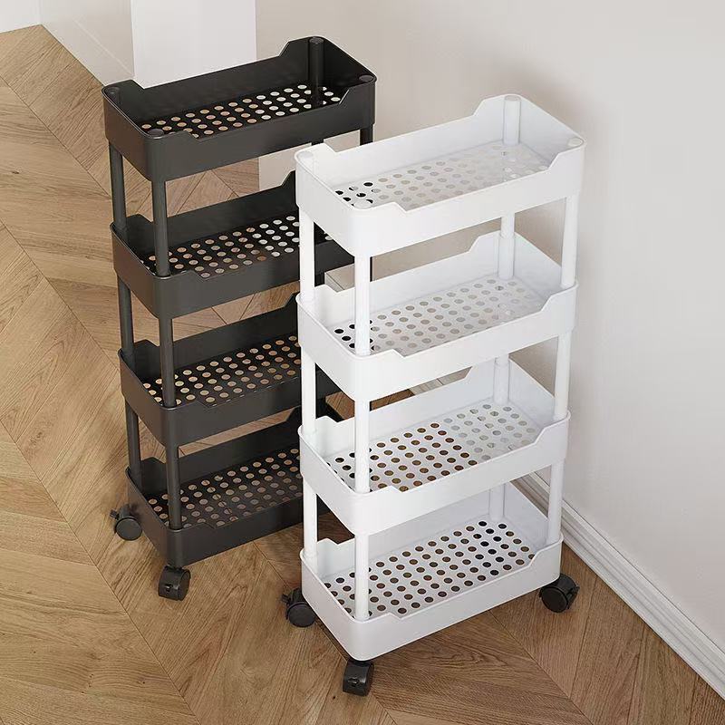 Rak penyimpanan troli dapur, rak penyimpanan multi lapisan dapat digerakkan untuk ruang tamu kamar tidur rak penyimpanan makanan ringan