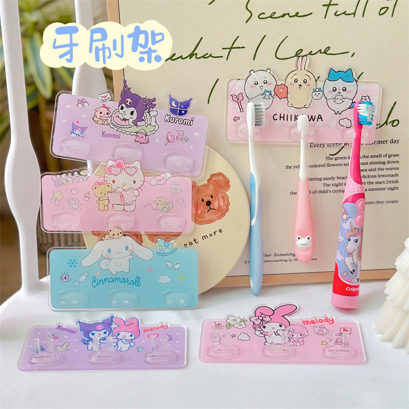 Rak Sikat Gigi Tanpa Lubang untuk Rumah Tangga Stiker Sikat Dinding Sederhana Kamar Mandi Akli Kartun Rak Penyimpanan Sikat Gigi Toilet
