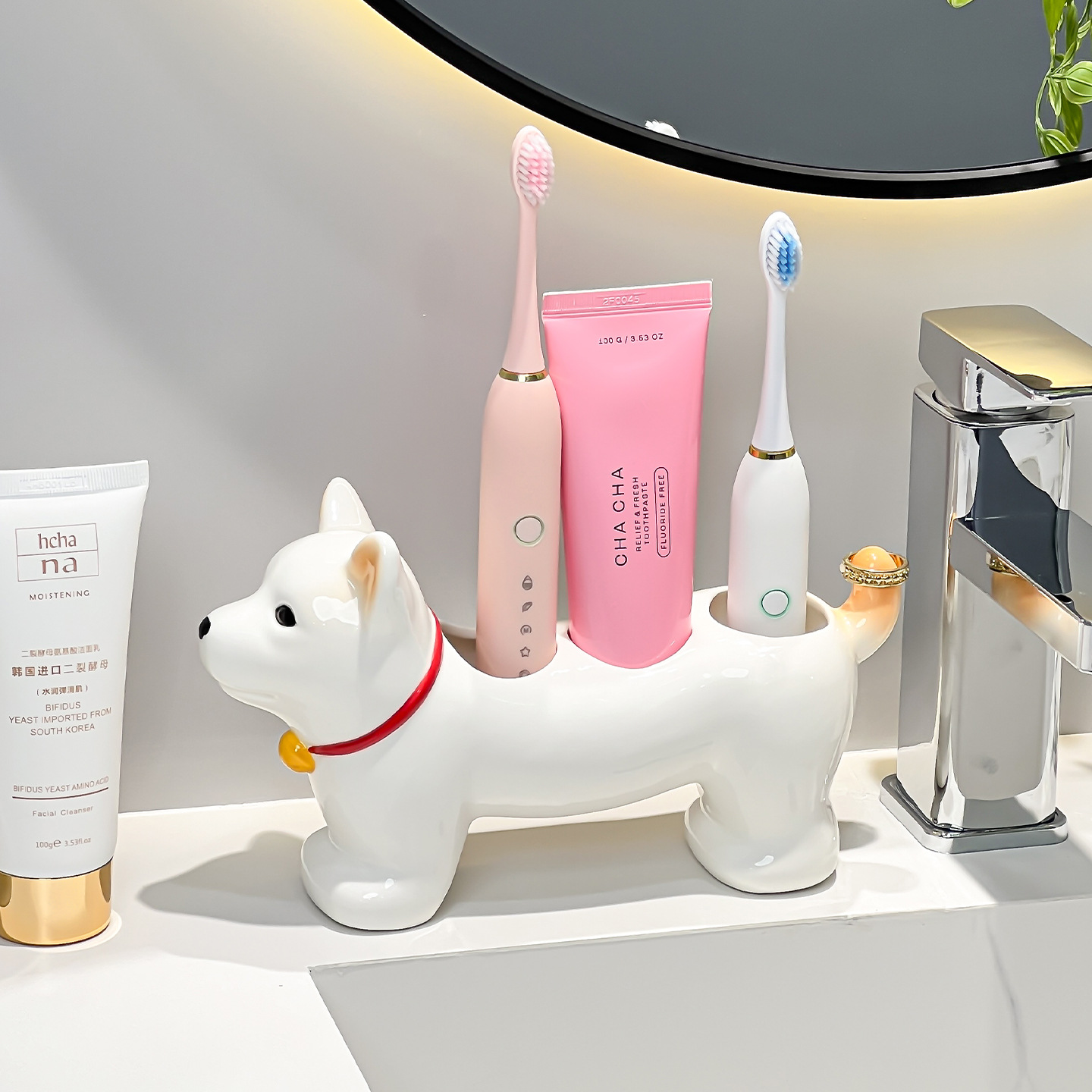卡通狗狗陶瓷牙刷架置物架家用卫生间洗漱台洗手台牙刷牙膏底座