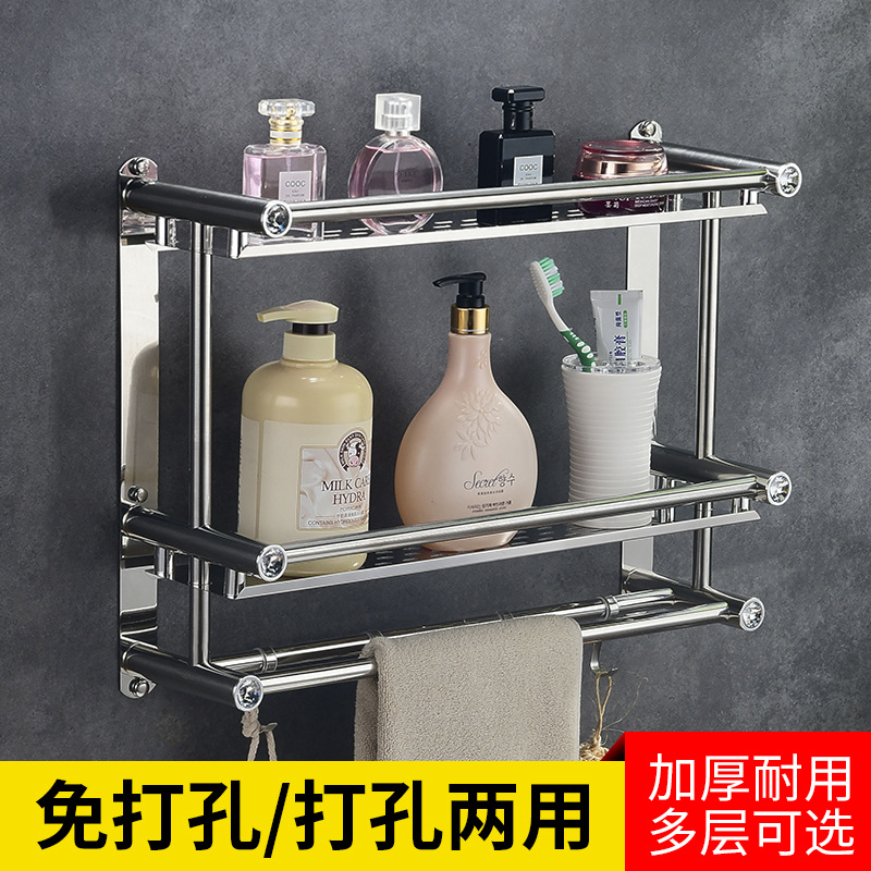 Rak Penyimpanan Bahan Stainless Steel 304 Ekstra Tebal Barang Tersedia Rak Handuk Lapisan Tunggal Toilet Tanpa Lubang Rak Penyimpanan Kamar Mandi Grosir
