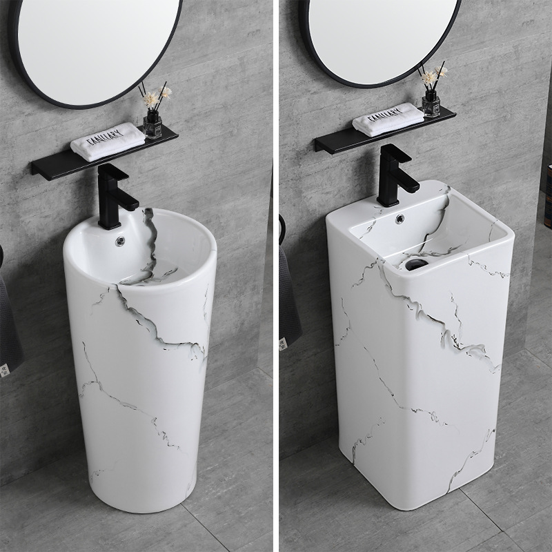 Baskom Cuci Tangan Putih Tinta Eropa Utara Baskom Lantai Berdiri Baskom Cuci Wajah Persegi Baskom Silinder Satu Tubuh Lukisan Tangan