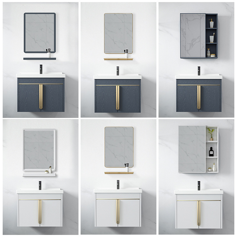 Fasisha kabinet kombinasi plastik aluminium yang dipasang di dinding pelat batu tegakan keramik terintegrasi kabinet kamar mandi bebas kelembaban kabinet gantung tahan lembab