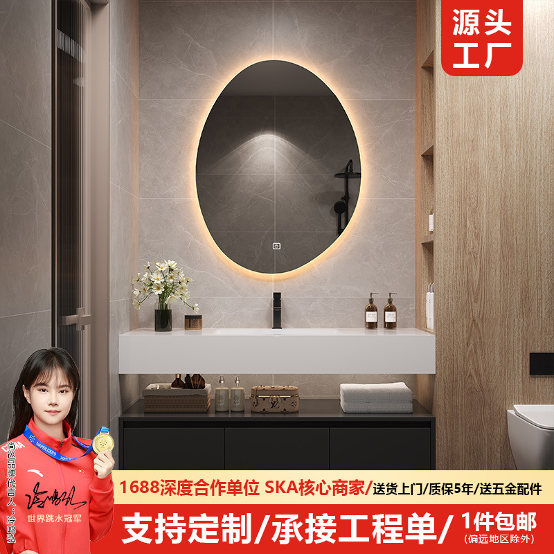 Lemari Kamar Mandi Terpadu Baskom Cuci Tangan Keramik Sederhana Modern dengan Cermin Rias Pintar Lemari Kombinasi Kamar Mandi Aluminium Luar Ruangan