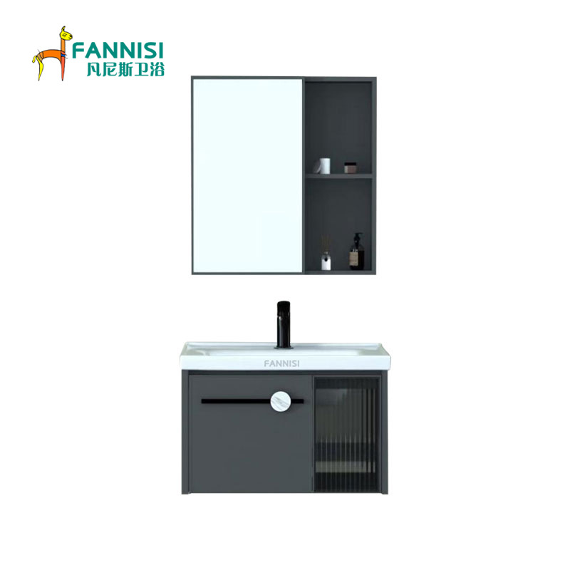 Pabrik kualitas tinggi grosir kamar mandi ruang aluminium Aloi kabinet terintegrasi keramik wastafel kabinet kamar mandi kombinasi setelan