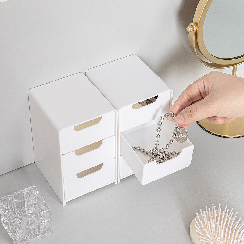 Kotak Penyimpanan Laci Tiga Lantai Lemari Cermin Kotak Penyimpanan Kamar Mandi Meja Kamar Mandi Nilai Wajah Tinggi Kotak Penyimpanan Perhiasan Kosmetik
