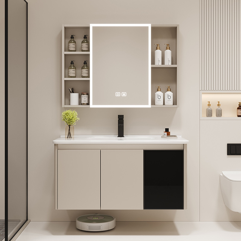 Kombinasi Lemari Kamar Mandi Modern Sederhana Baskom Cerdas Satu Tubuh Kamar Mandi Lemari Cuci Tangan Lemari Cuci Meja Penyimpanan