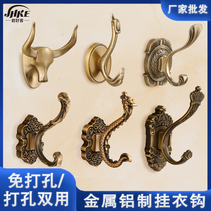 卫生间浴室玄关挂门后墙壁上免打孔双用单勾衣服帽柜金属铝挂衣钩