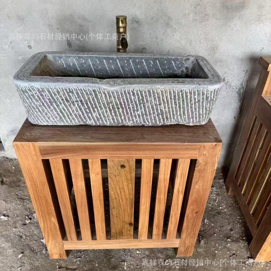 Kombinasi Wastafel Kayu Asli Palung Batu Tua Wastafel Halaman Luar Ruangan Wastafel Kamar Mandi Kayu Elm Tua Gaya Tiongkok Wastafel Retro