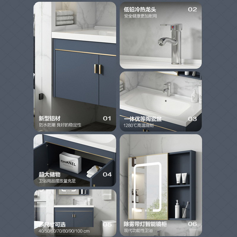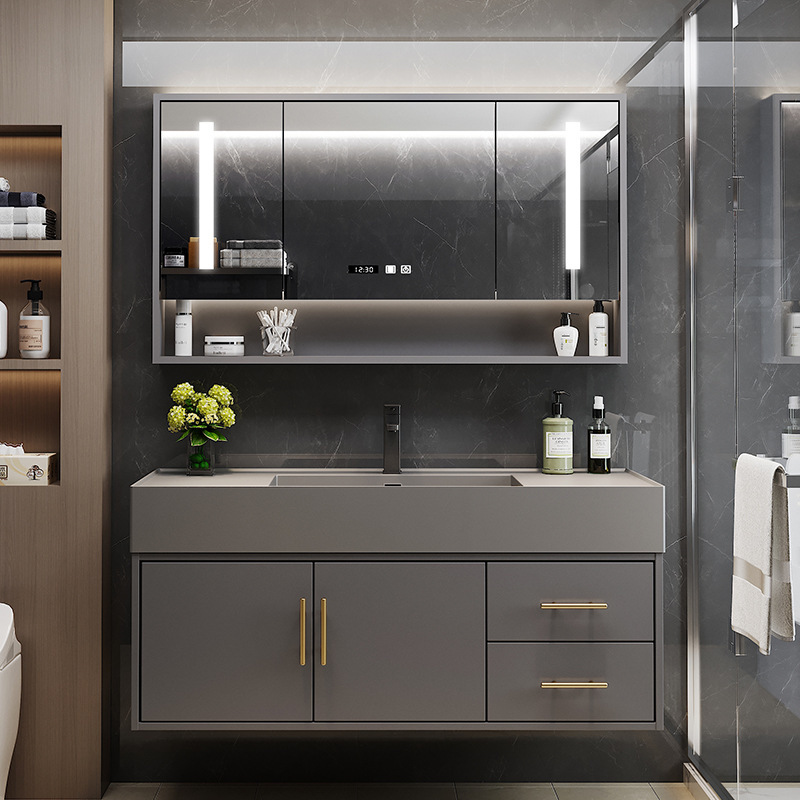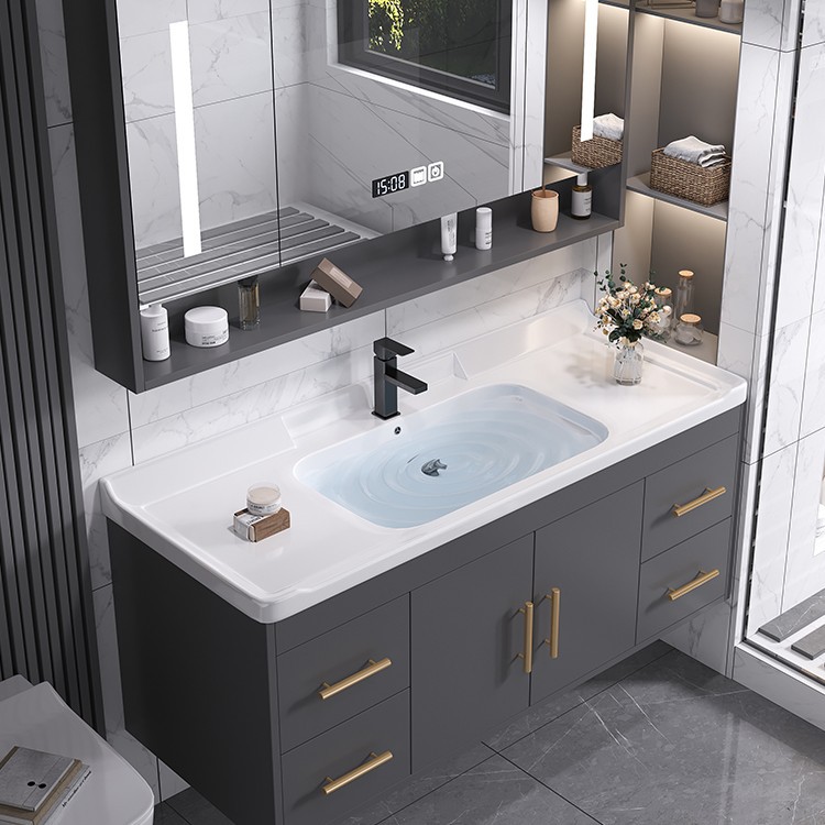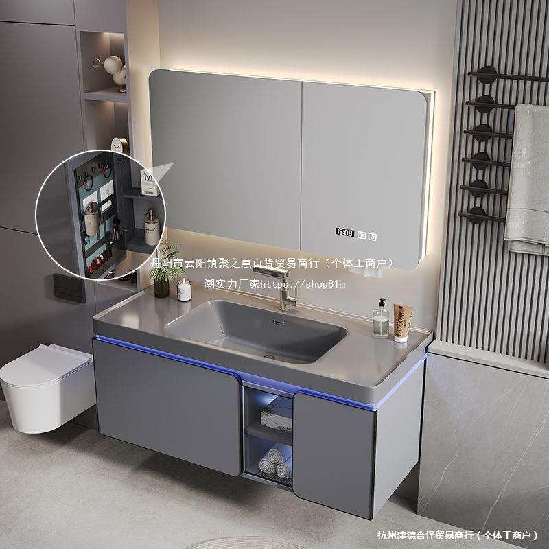 Baskom Cuci Tangan Papan Batu Terpadu Kombinasi Lemari Kamar Mandi Kemewahan Ringan Aluminium Luar Angkasa