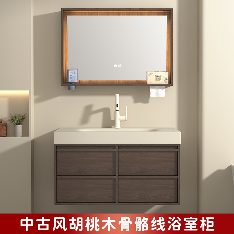 Lemari Kamar Mandi Terpadu Kayu Solid Modern Sederhana Kombinasi Baskom Cuci Tangan Mewah Ringan Meja Cuci Wajah Lemari Kamar Mandi