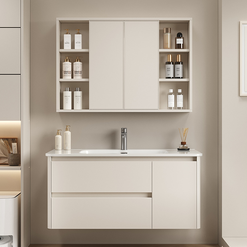 50 "lebar krim gaya multi-lapisan kayu solid kabinet kamar mandi dengan sisi kabinet bak cuci kombinasi keramik terintegrasi bak cuci meja