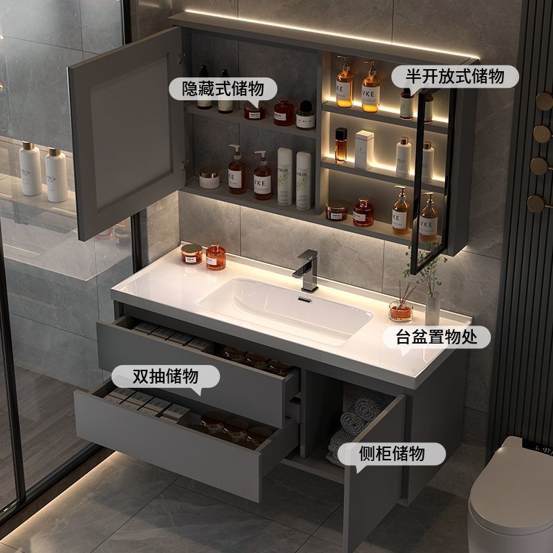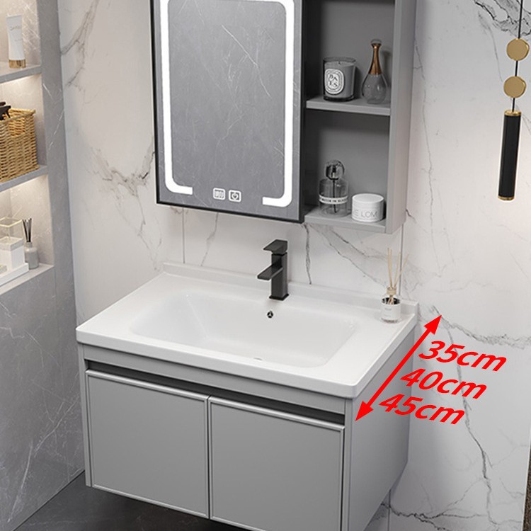 Baskom Cuci Tangan Papan Batu Terpadu Kombinasi Lemari Kamar Mandi Kemewahan Ringan Aluminium Luar Angkasa