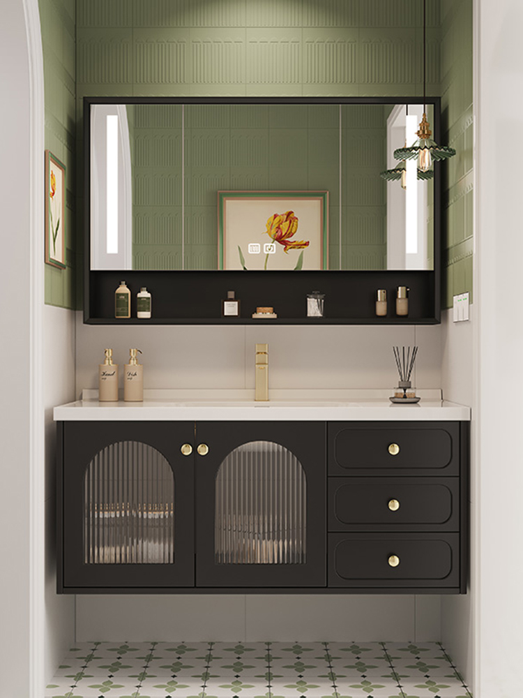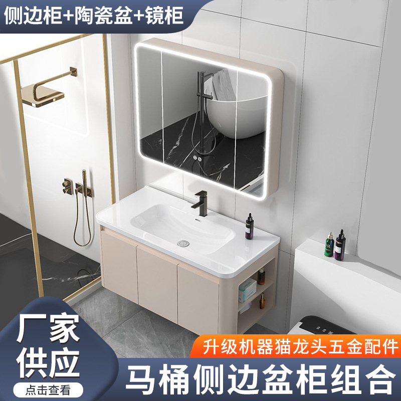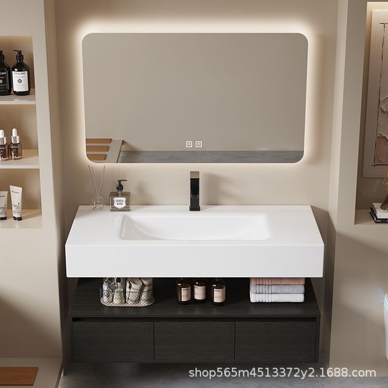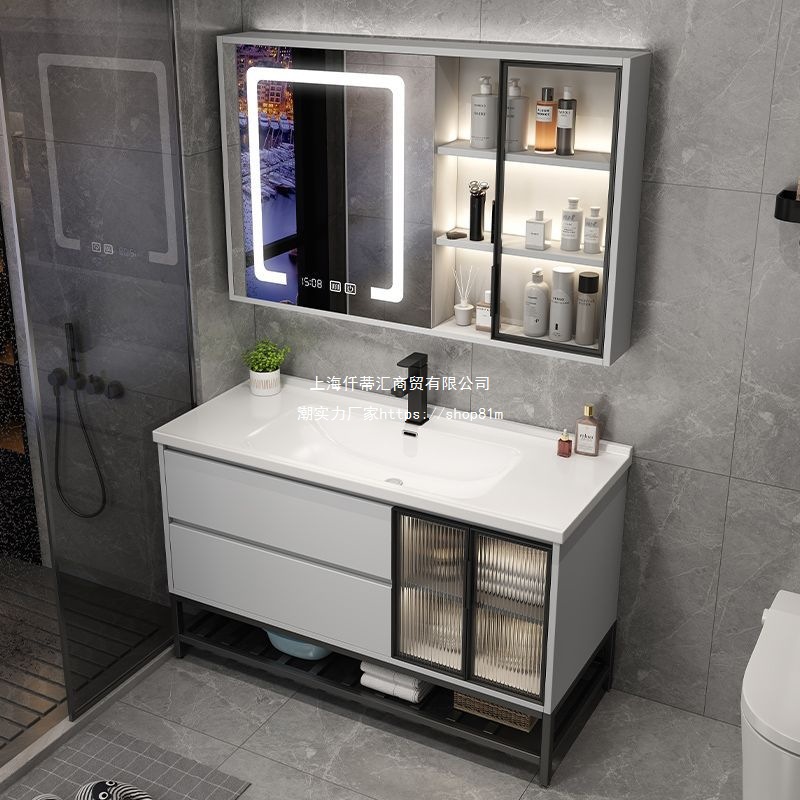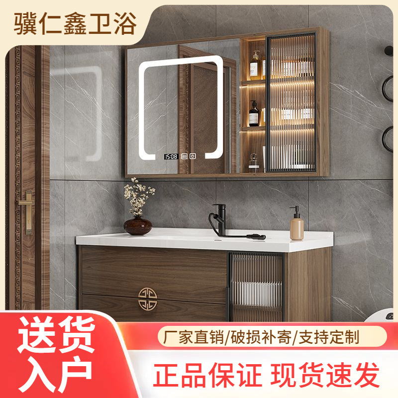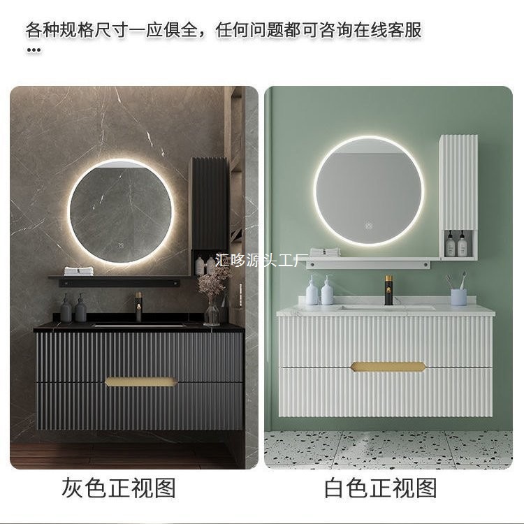 Lemari Kamar Mandi Terintegrasi Papan Keramik Kemewahan Modern Ringan Kayu Solid Cerdas Lemari Kamar Mandi Cuci Tangan Meja Cuci Wajah