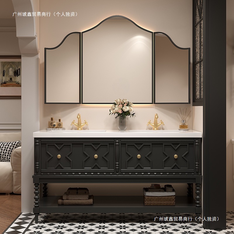 Lemari Kamar Mandi Tipe Lantai Ganda Model Retro Prancis Kombinasi Papan Batu Baskom Satu Tubuh Meja Cuci Kamar Mandi Baskom Cuci Tangan