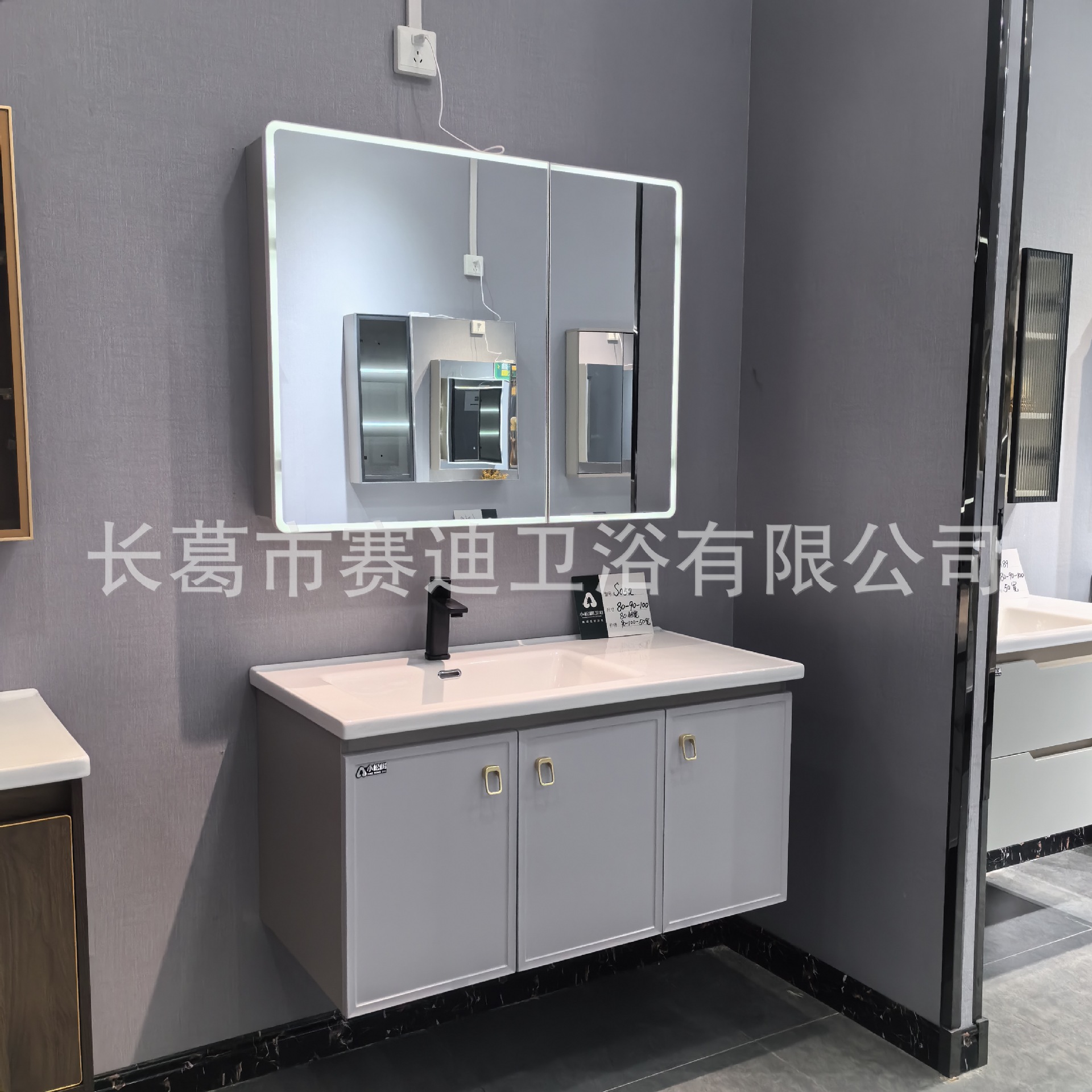 Lemari Kamar Mandi Aluminium Luar Ruangan Baskom Cuci Wajah Kombinasi Lemari Kamar Mandi Tipe Kecil Satu Tubuh Balkon Baskom Cuci Tangan Keramik Satu Meter