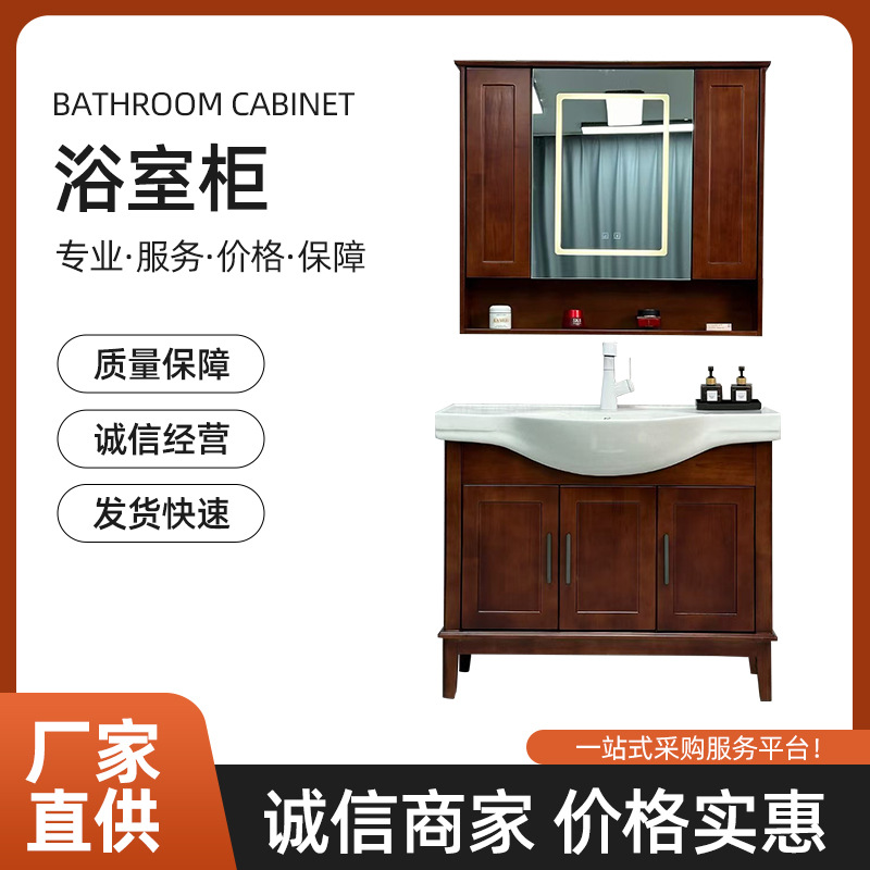 Lemari Kamar Mandi Kayu Solid Sederhana Modern Kombinasi Papan Batu Baskom Satu Tubuh Meja Cuci Kamar Mandi