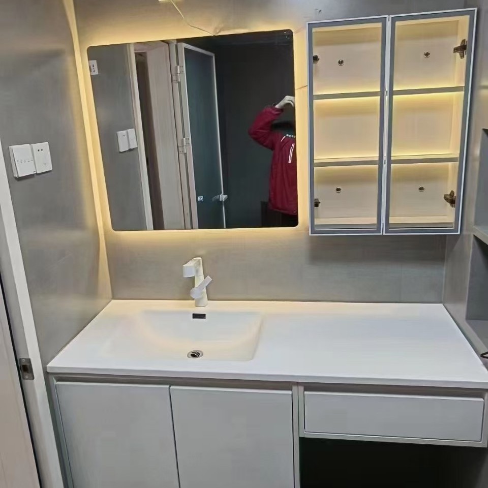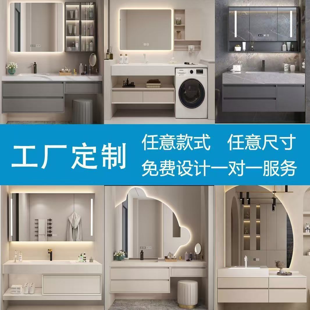 Lemari Kamar Mandi Cerdas Baki Pelat Batu Kemewahan Ringan Satu Tubuh Meja Cuci Kamar Mandi Lemari Kamar Mandi Kombinasi Baskom Cuci Wajah