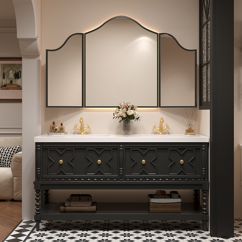 Lemari Kamar Mandi Tipe Lantai Ganda Model Retro Prancis Kombinasi Papan Batu Baskom Satu Tubuh Meja Cuci Kamar Mandi Baskom Cuci Tangan