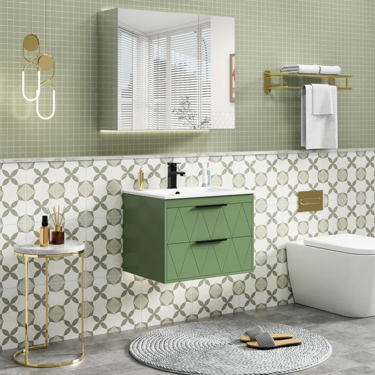 Lemari Kamar Mandi Hijau Putih Gantung Dinding Lemari Saluran Air 2 Pompa Perlengkapan Kamar Mandi Sederhana Penyimpanan