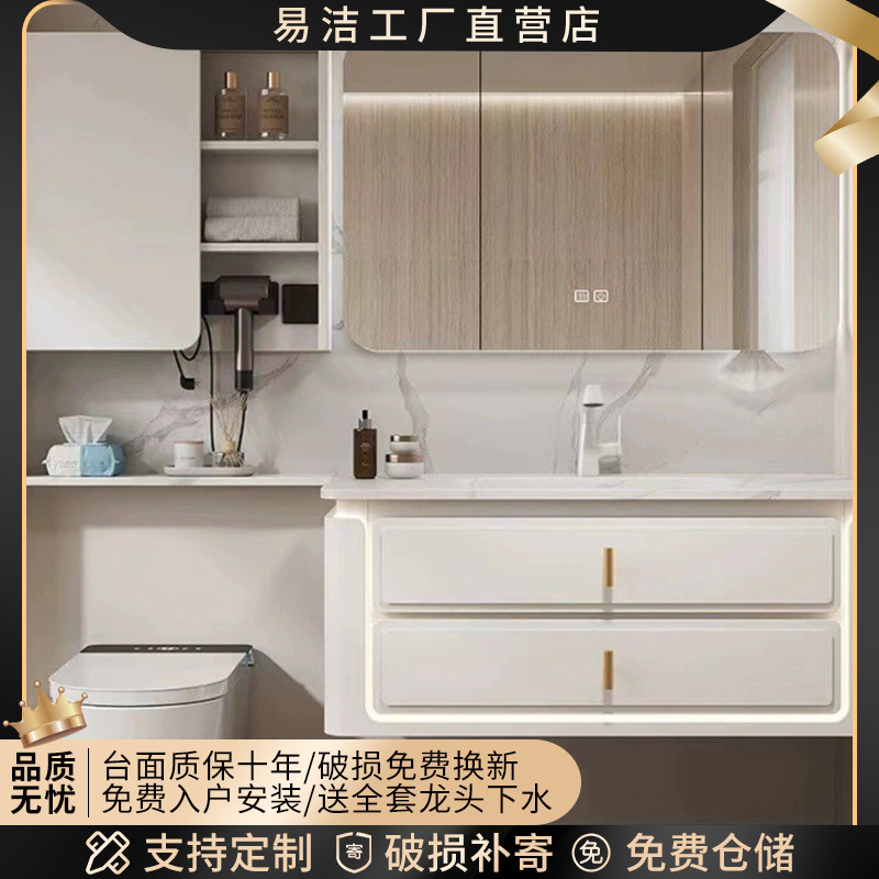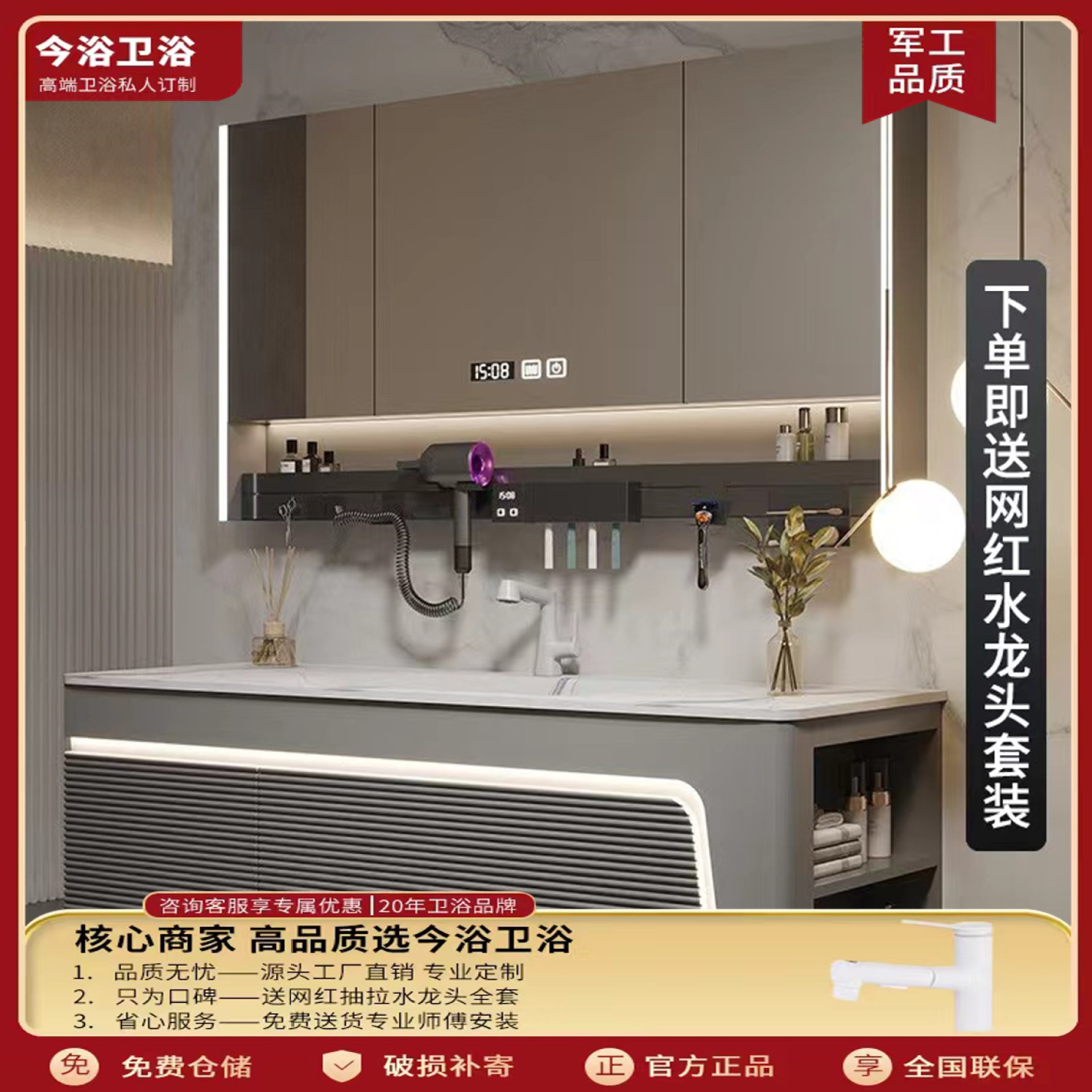 Meja Papan Batu Lemari Cermin Cerdas Kombinasi Lemari Kamar Mandi Kombinasi Meja Cuci Tangan Kolam Cuci Wajah