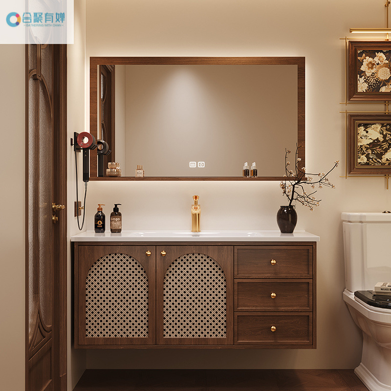 Lemari Kamar Mandi Kayu Oak Gaya Antik Rotan Retro Satu Tubuh Baskom Cuci Tangan Baskom Meja Cuci Wajah Lemari Baskom Gaya Amerika