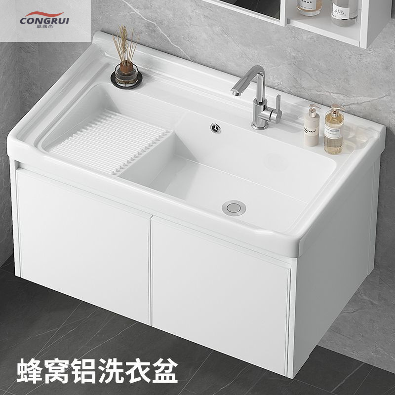 Papan Cuci Keramik Baskom Cuci Toilet Balkon Model Baru Lemari Kamar Mandi Gantung Dinding Honeycomb Aluminium