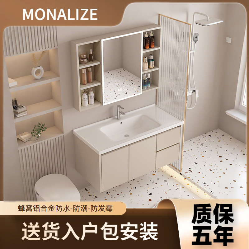 Lemari Kamar Mandi Aluminium Honeycomb Tebal Perdalam Lemari Wastafel Kombinasi Keramik Kamar Mandi Satu Tubuh Meja Cuci Kamar Mandi
