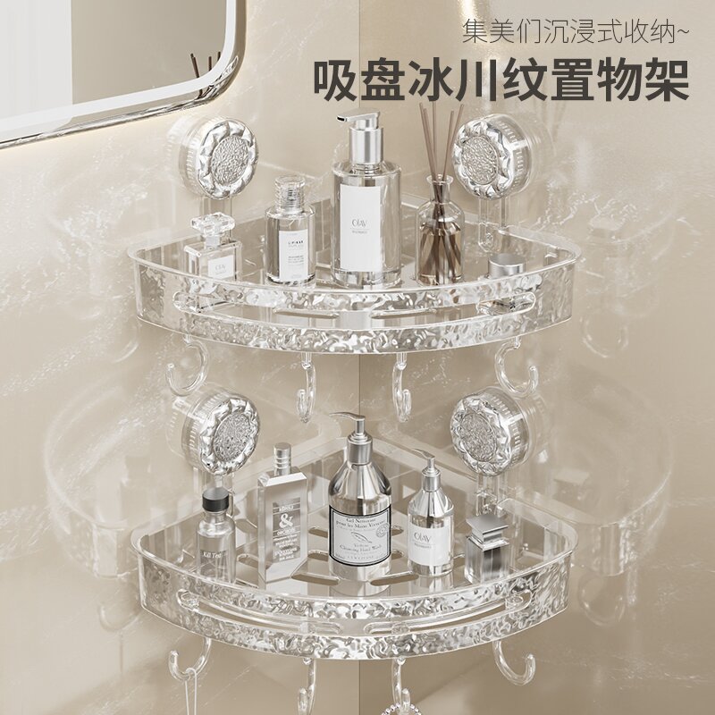 Rak penyimpanan cangkir hisap bergelombang, rak penyimpanan sudut tripod kamar mandi toilet toilet, rak penyimpanan bebas lubang di dinding