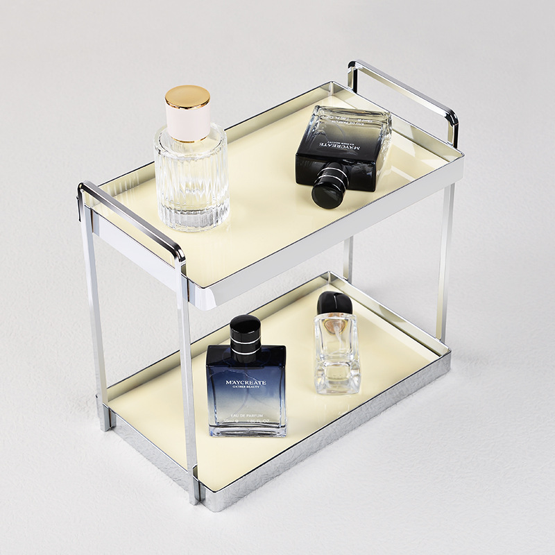 Rak penyimpanan cangkir air dua lapisan akrilik, Desktop dapur kamar mandi meja rias perawatan kulit rak penyimpanan lorong kosmetik