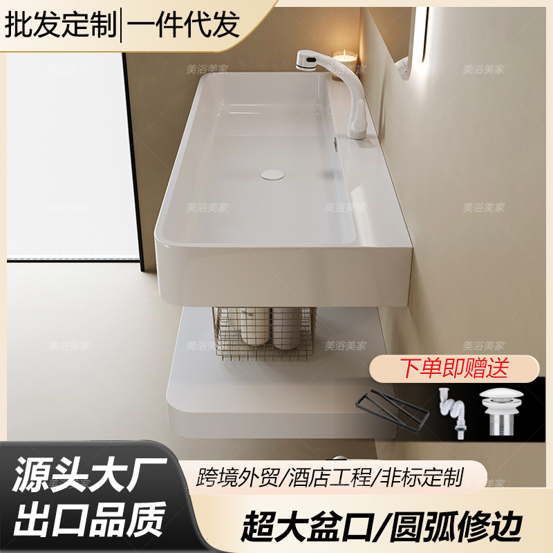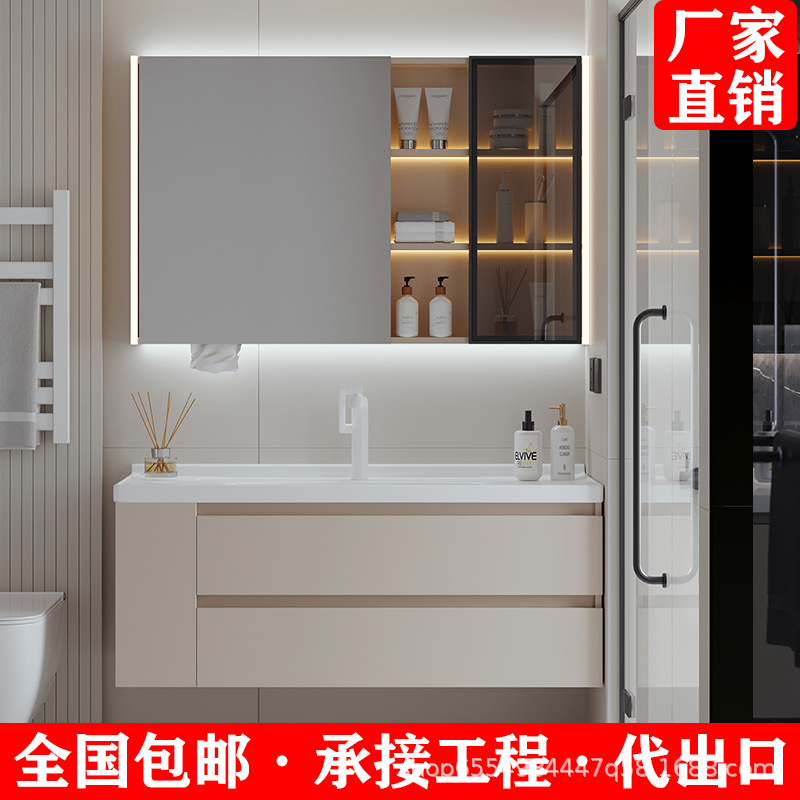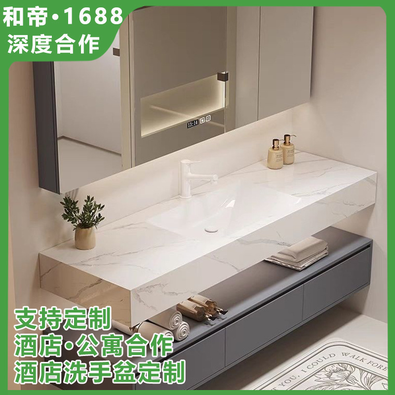 Papan Batu Keramik Seamless Satu Tubuh Lemari Kamar Mandi Kombinasi Kamar Mandi Model Hotel Meja Cuci Tangan Baskom Cuci Wajah