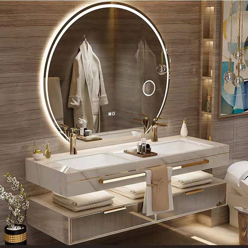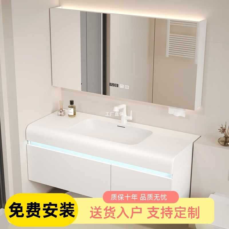Lemari Kamar Mandi Terpadu Papan Batu Kemewahan Ringan Meja Cuci Kamar Mandi Modern Meja Cuci Tangan Lemari Baskom Ganda Kolam Cuci Wajah Cerdas