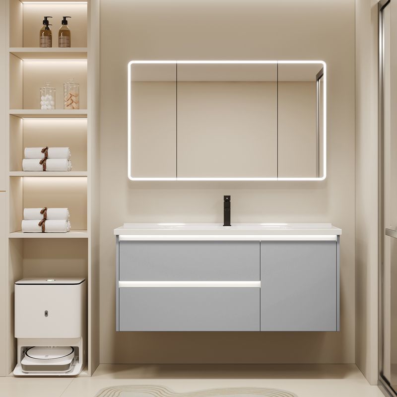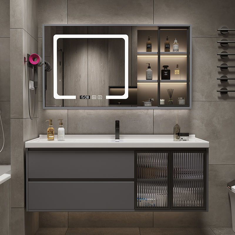 Yuju Lemari Kamar Mandi Aluminium Luar Angkasa Ekstra Tebal Lemari Cuci Wajah Kombinasi Meja Cuci Tangan Keramik Kombinasi Cerdas