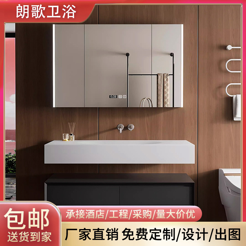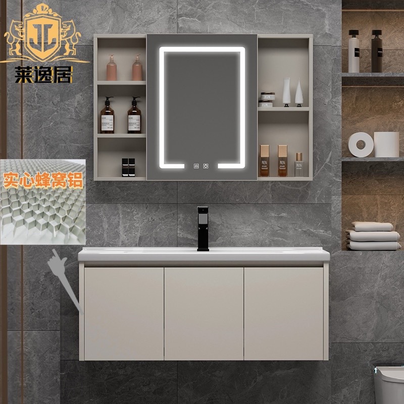 Kabinet kamar mandi aluminium sarang lebah, Modern sederhana meja cuci tangan keramik terintegrasi wastafel tanpa jejak meja piring batu kabinet cermin pintar