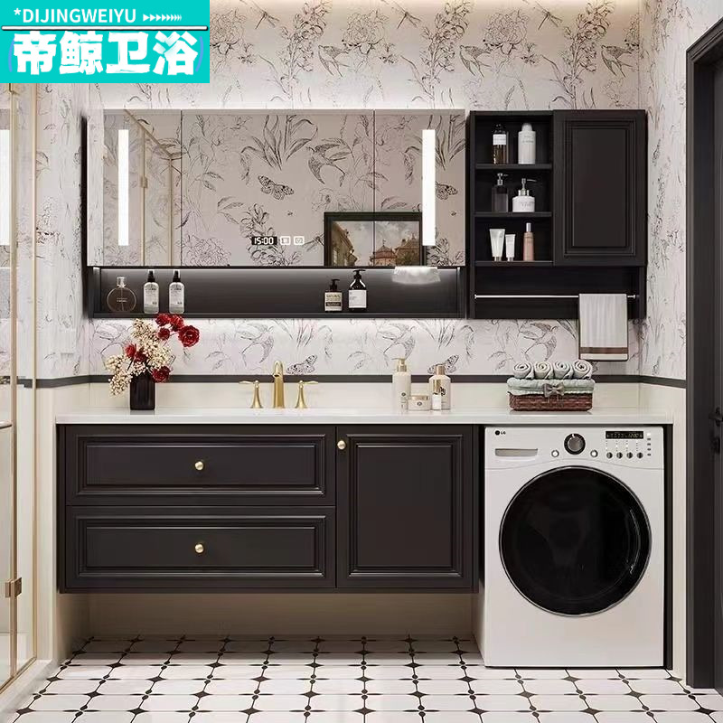 Lemari Kamar Mandi Kayu Oak Prancis Kombinasi Mesin Cuci Satu Tubuh Lemari Papan Batu Baskom Cuci Tangan Baskom Kamar Mandi