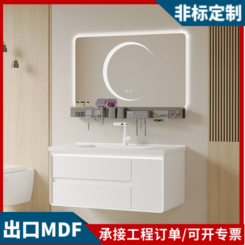 Modern Sederhana Cerdas Lemari Kamar Mandi Pintu Kaca Wastafel Kamar Mandi Wastafel Kayu Solid Kombinasi Wastafel Satu Tubuh Keramik