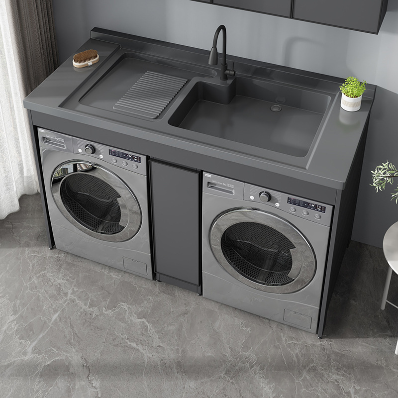 Kabinet mesin cuci ganda sederhana, kombinasi terintegrasi dengan papan cuci balkon mitra pengering ruang kabinet kamar mandi aluminium