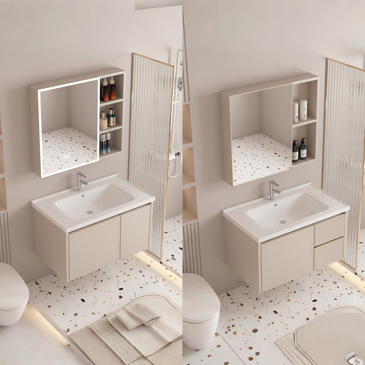 Kombinasi Lemari Kamar Mandi Meja Cuci Tangan Kamar Mandi Meja Cuci Wajah Lemari Cuci Keramik Satu Tubuh Lemari Cermin Cerdas Gaya Krim